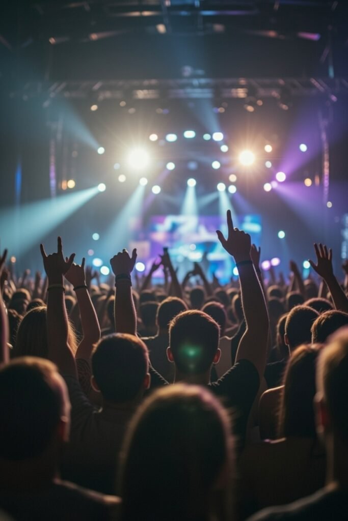 El pop en vivo se disfruta en grandes recintos, estadios, festivales y teatros donde miles de personas comparten la misma emoción.