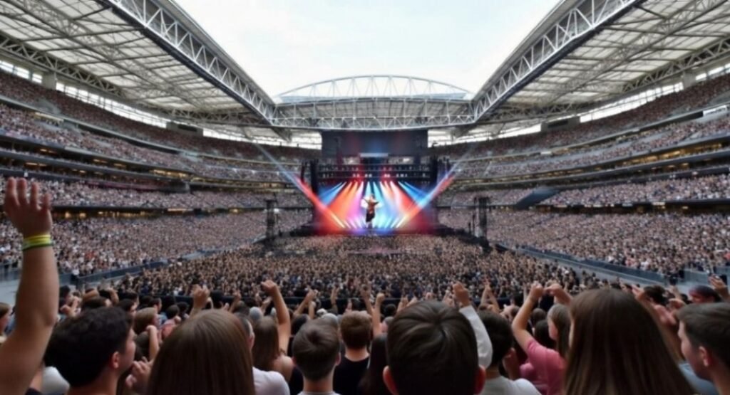 Esto se traduce en escenarios de grandes dimensiones, pantallas de alta definición visibles desde cualquier punto del recinto y un sonido adaptado para audiencias masivas. El objetivo no es solo llegar a más público, sino ofrecer una experiencia homogénea y de alta calidad independientemente del tamaño del estadio.